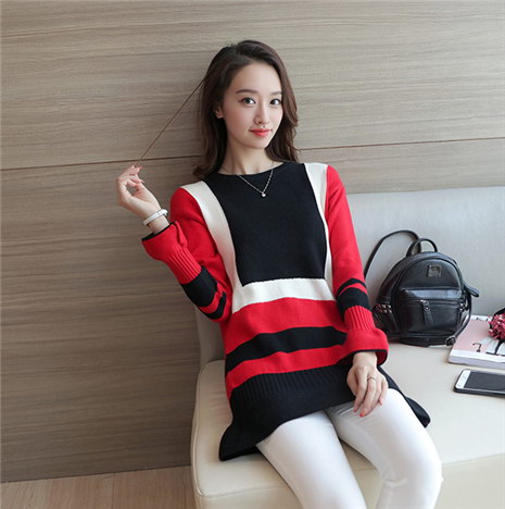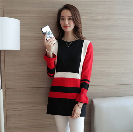 圆领套头打底针织韩版宽松喇叭袖毛衣