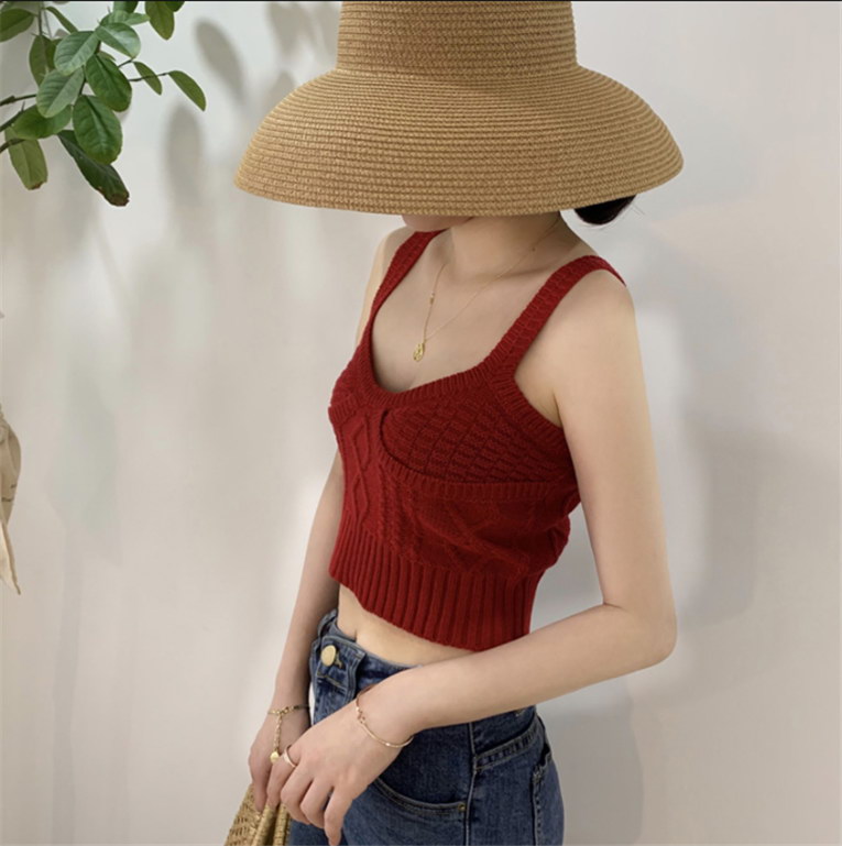 韩版性感低胸短款针织吊带背心